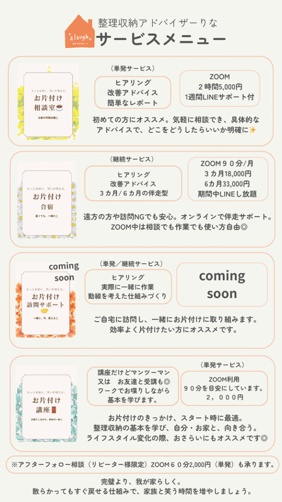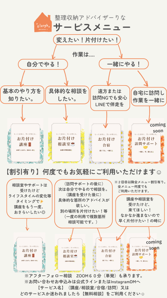 ✅ 当方自宅開催も可能(+1,000円で自宅収納見学付き)