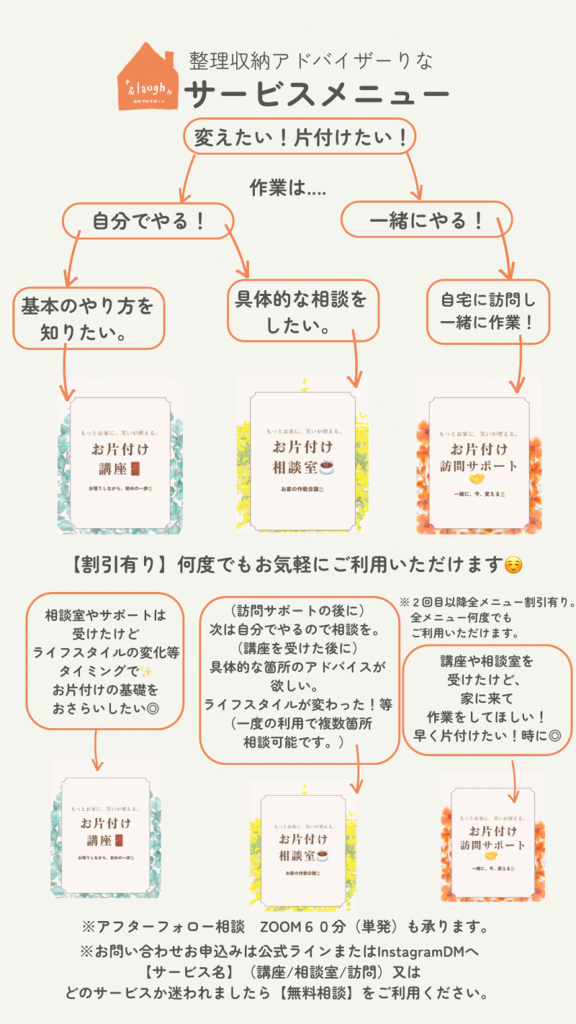 お片付け相談室は、90分で、お家も気持ちも軽くなる“作戦会議”の時間です。