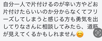 もちろん無理にとは言いません。お片付け相談室は、文章やお話だけでも大丈夫です。